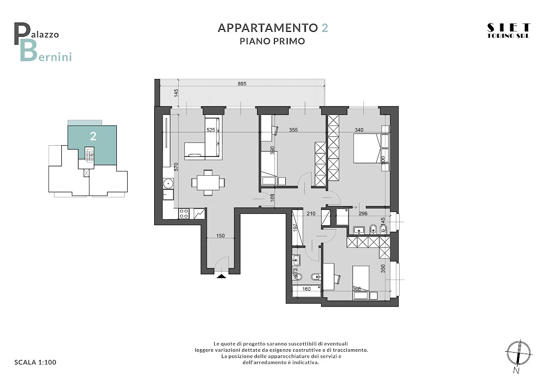 Appartamento quadrilocale composto da ingresso, soggiorno living, disimpegno, tre camere, due bagni, cantina di pertinenza. Superficie commerciale mq. 122.