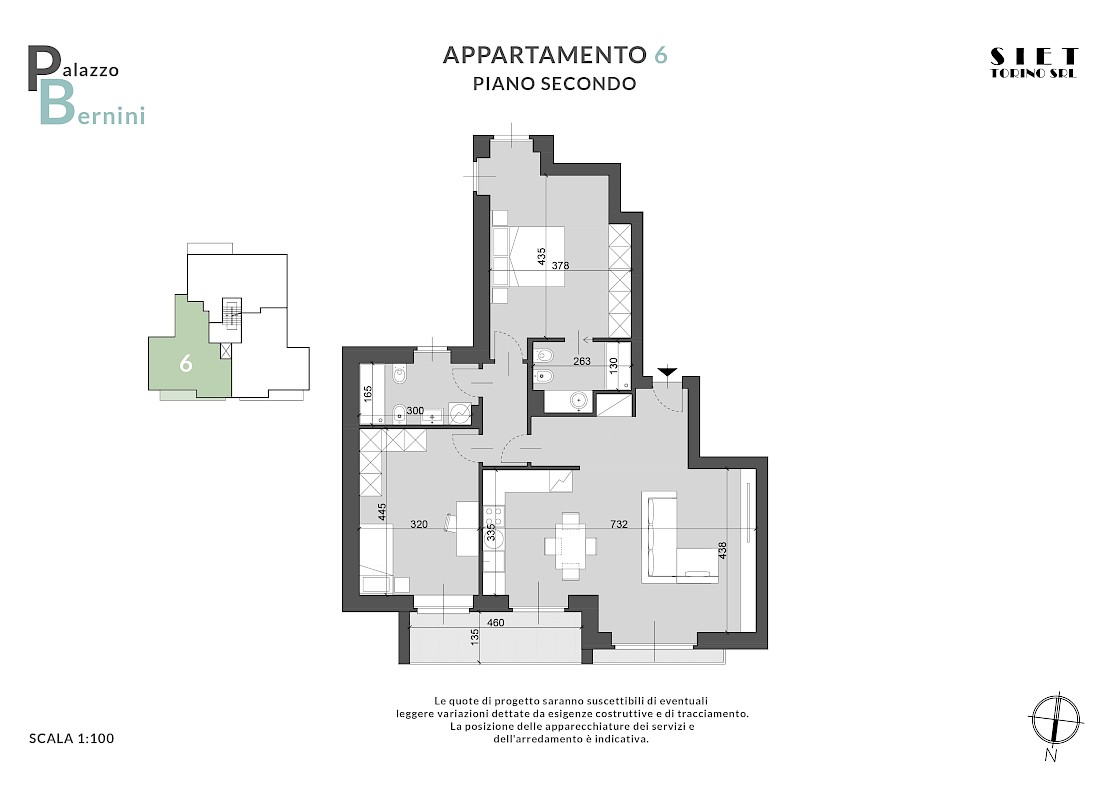Appartamento quadrilocale composto da ingresso, soggiorno living, disimpegno, due camere, due bagni, cantina di pertinenza. Superficie commerciale mq. 105.